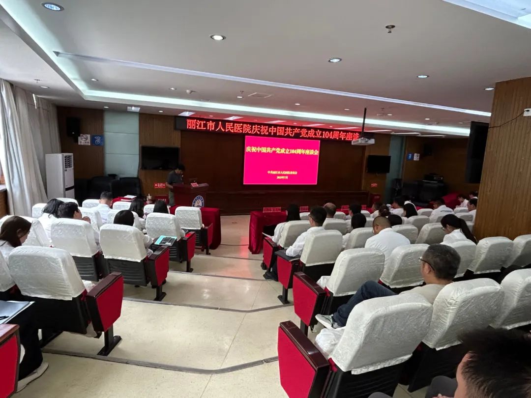 为庆祝中国共产党成立104周年,弘扬伟大建党精神,传承红色基因,激励广大医务工作者以更加坚定的信念、更加饱满的热情,投身到医疗卫生事业中,为守护人民群众生命健康、推进健康中国建设贡献力量,7月1日,丽江市人民医院党委开展了庆祝中国共产党成立104周年座谈活动。